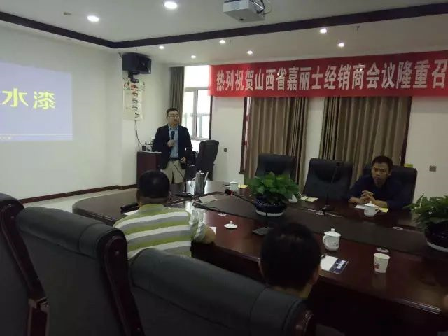 2017年9月15日,新機(jī)遇?謀發(fā)展?創(chuàng)未來(lái)——嘉麗士藝術(shù)水漆山西經(jīng)銷商會(huì)議在山西懷仁縣隆重召開,嘉麗士事業(yè)部總經(jīng)理佘保明、應(yīng)用支持部副總監(jiān)賴秋平、省區(qū)經(jīng)理周廣宇以及山西重點(diǎn)經(jīng)銷商等人出席了該會(huì)議,共同謀劃嘉麗士在山西省的新發(fā)展!新機(jī)遇!