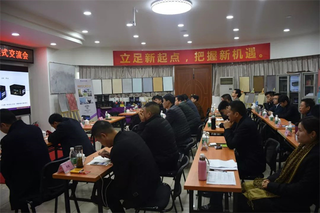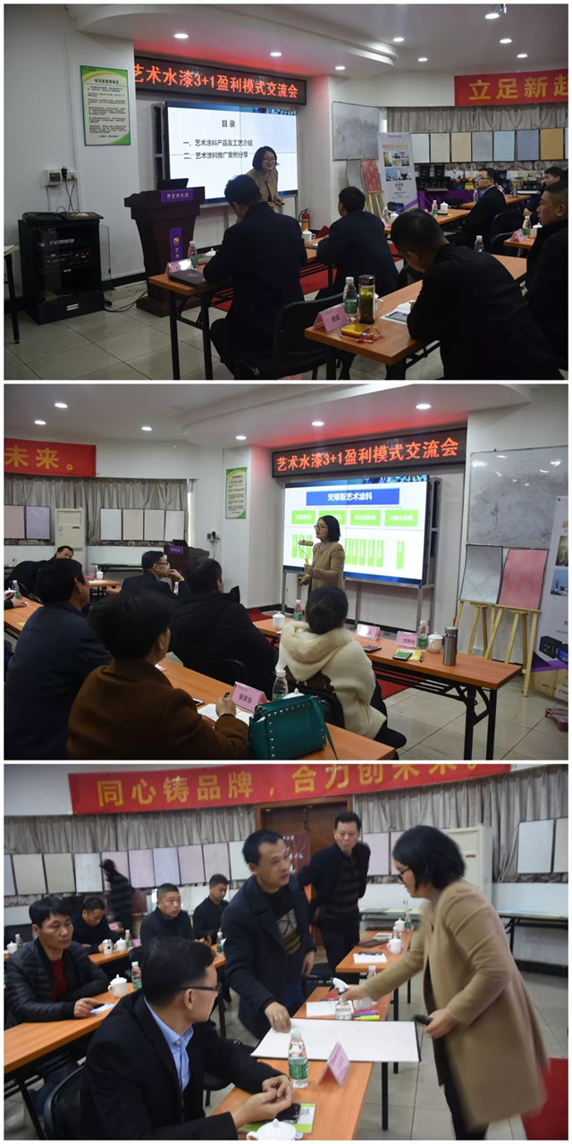 隨后,藝術涂料服務部將部長給大家闡述了《梵蒂斯藝術涂料產品介紹及推廣》課題,看著個性十足、藝術質感的樣板,在座各位興致滿滿,不停地向蔣部長提問,甚至一度推遲了會議的時間。