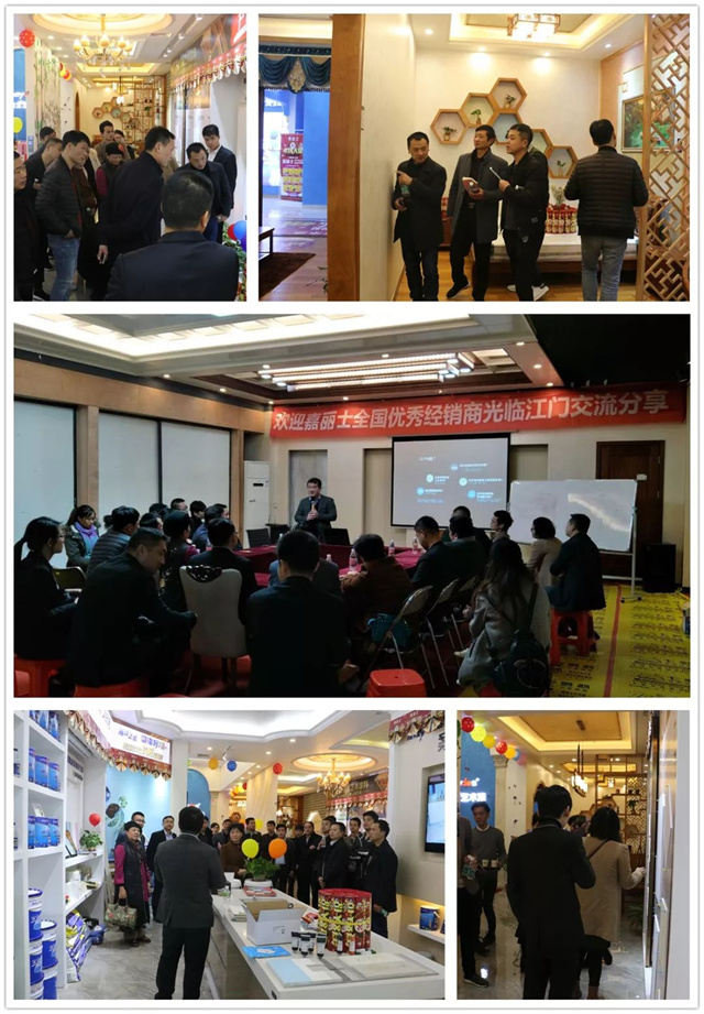 下午,佘總還帶領隊伍到訪江門優(yōu)秀經銷商藝術漆店面、樣板房進行參觀學習。簡約大氣的體驗式藝術漆店面讓到訪經銷商感到耳目一新,江門劉總在這2年內做市場的投入以及心得給與會經銷商作分享講解,現(xiàn)場全程高能、干貨滿滿,在座經銷商躍躍欲試、激烈探討,紛紛表示回到市場后必定緊跟公司的步伐,大力開拓新市場!
