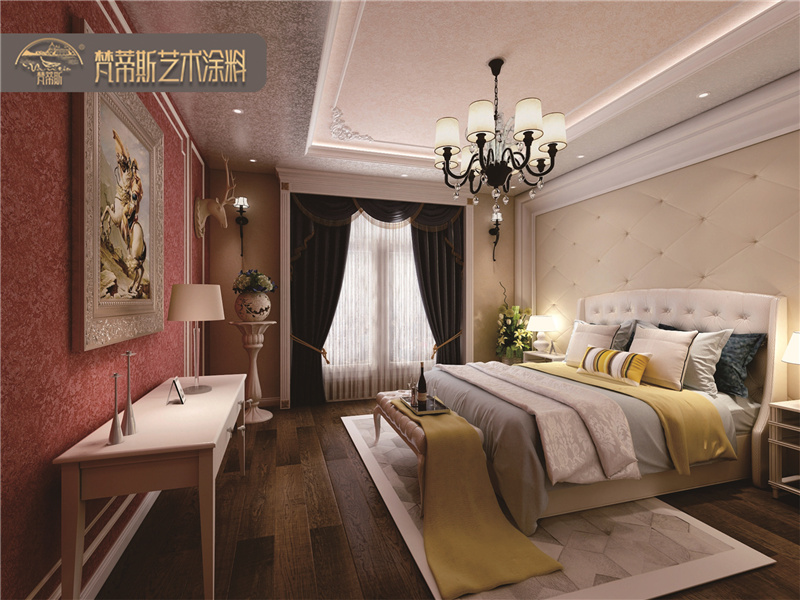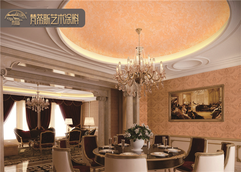 2、絲綢質(zhì)感。絲綢般的質(zhì)感打造浮光掠影的墻面效果,讓墻面如金緞流蘇般精致細(xì)膩。