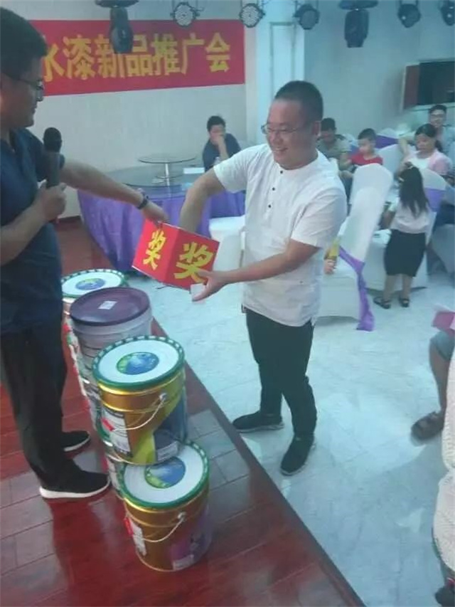 除此之外,劉經(jīng)理還給現(xiàn)場師傅介紹了嘉麗士藝術(shù)水漆的新品,從產(chǎn)品的包裝到產(chǎn)品的特性,無一不對外宣揚嘉麗士藝術(shù)水漆健康環(huán)保的家裝理念。