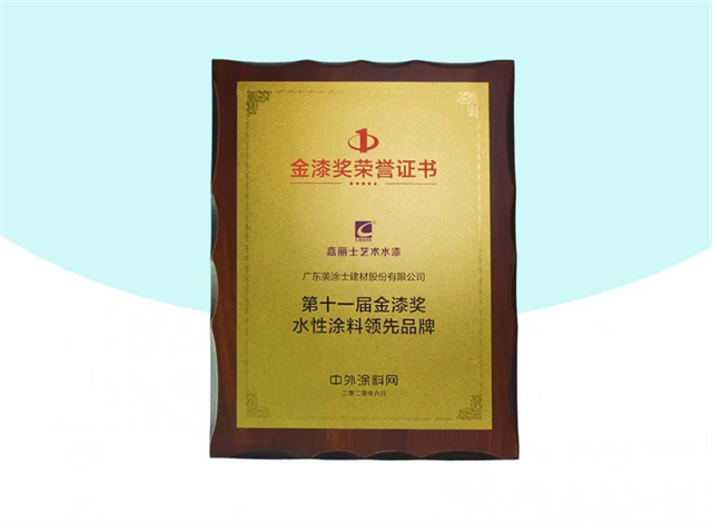 值得一提的是,在此次金漆獎頒獎典禮上,嘉麗士憑借出色的表現(xiàn)攬獲“第十一屆金漆獎水性涂料領(lǐng)先品牌”大獎。