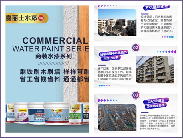 嘉麗士水漆專注于商業(yè)及公共空間涂裝和翻新業(yè)務(wù),包含鐵木墻通刷多面水漆、水性地坪漆、免砸磚防水、黑漆等產(chǎn)品體系。產(chǎn)品水性環(huán)保,無刺激氣味,全方位呵護健康。施工簡單、周期短,可做到即刷即入住,大大提高了翻新效率。產(chǎn)品可調(diào)千色,保色性好,非常適合老舊小區(qū)改造翻新。