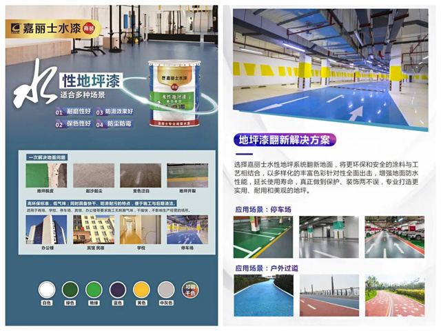 選擇嘉麗士水性地坪漆系統(tǒng)翻新地面,將環(huán)保和安全的涂料與工藝相結(jié)合,以多樣化的豐富色彩針對(duì)性全面出擊,增強(qiáng)地面防水功能,延長(zhǎng)使用壽命,真正做到保護(hù)、裝飾兩不誤,專業(yè)打造更實(shí)用、耐用和美觀的地坪。