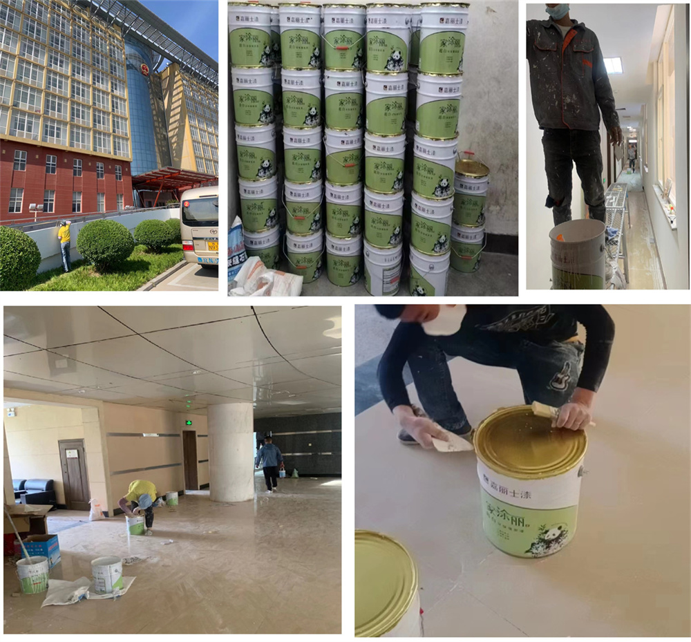 牡丹區(qū)區(qū)人民政府辦公樓嘉麗士水漆施工中環(huán)保無(wú)味樓內(nèi)工作人員正常上班施工師傅涂刷施工兩不誤