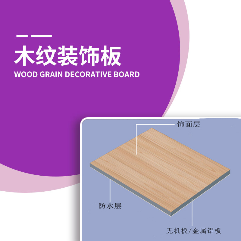 木紋生態(tài)裝飾板(也稱:木飾板)是以高強(qiáng)度無(wú)機(jī)纖維增強(qiáng)防火板/金屬鋁板為基材,采用特種生產(chǎn)工藝制得的具有多功能、綠色、節(jié)能、環(huán)保的內(nèi)墻裝飾板。
