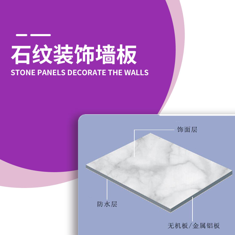 石紋裝飾板是以高強度無機纖維增強防火板/金屬鋁板為基材,采用特種生產工藝制得的具有多功能、綠色、節(jié)能、環(huán)保的內墻裝飾板。